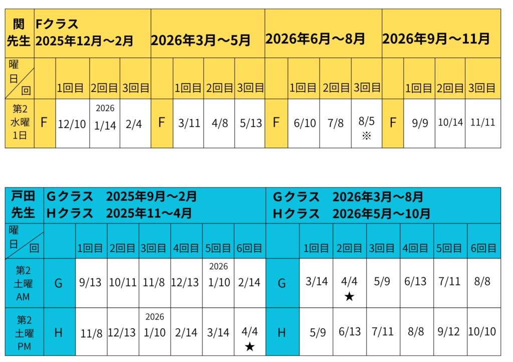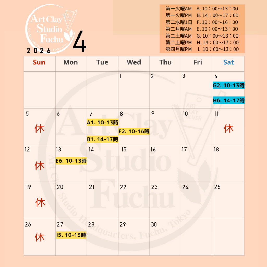 | 半日クラス 10:00~13:00/14:00~17:00 1日クラス 10:00~16:00(お昼休憩あり) |