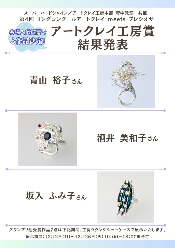 💍第4回リングコンクール -アートクレイシルバー meets プレシオサー『来場者の人気投票で決まる!アートクレイ工房賞 結果発表❕』