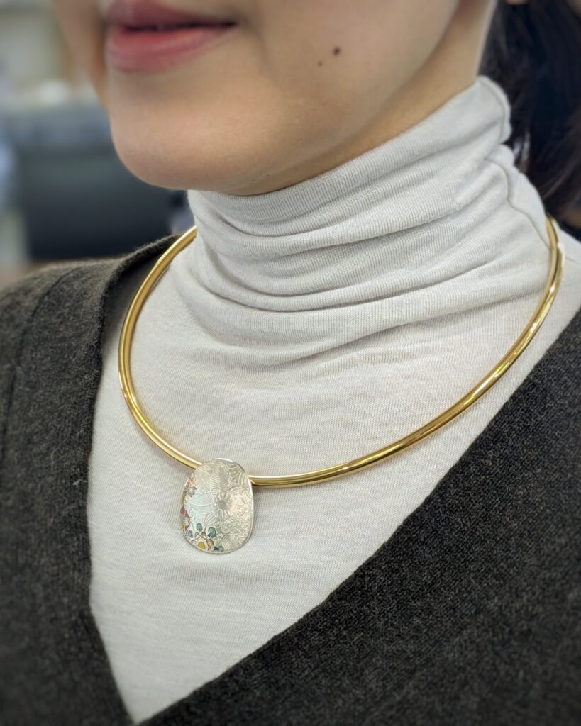 すっきりしたジュエリーライクなシルエットですが、イタリア製ロウビキ紐を撚っているので、非常に丈夫なネックレスです。