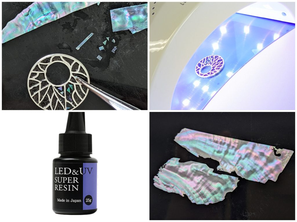 吉原 秀和先生初心者インストラクター向け基礎講座UVレジンとあわび貝シートで作る 螺鈿細工風ペンダント