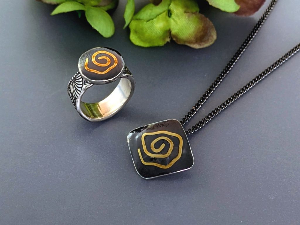 新木目金技法体験講座 関 普美先生 流し込み技法のペンダント
