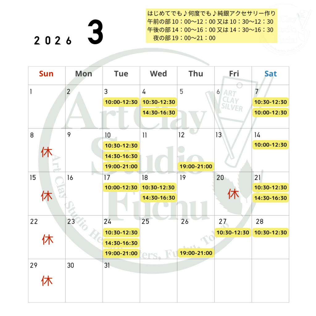 ・カレンダー上は対応可能日であっても事前に予約が入っていない場合、体験教室をクローズすることがございます。